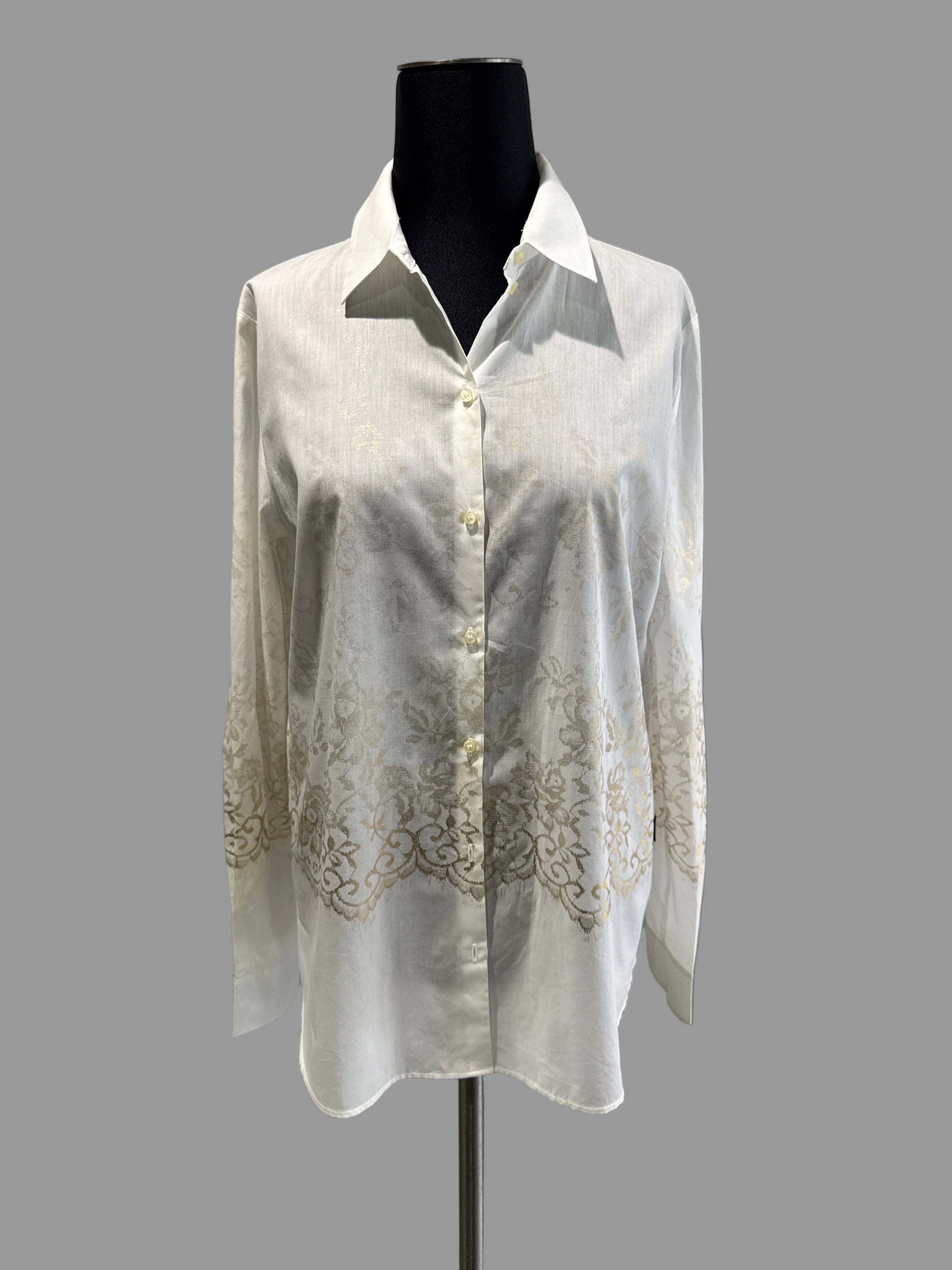 Structured long sleeve top with a detailed front and a visible zipper in the back. - Small, minimal logo beneath the zipper in the back...