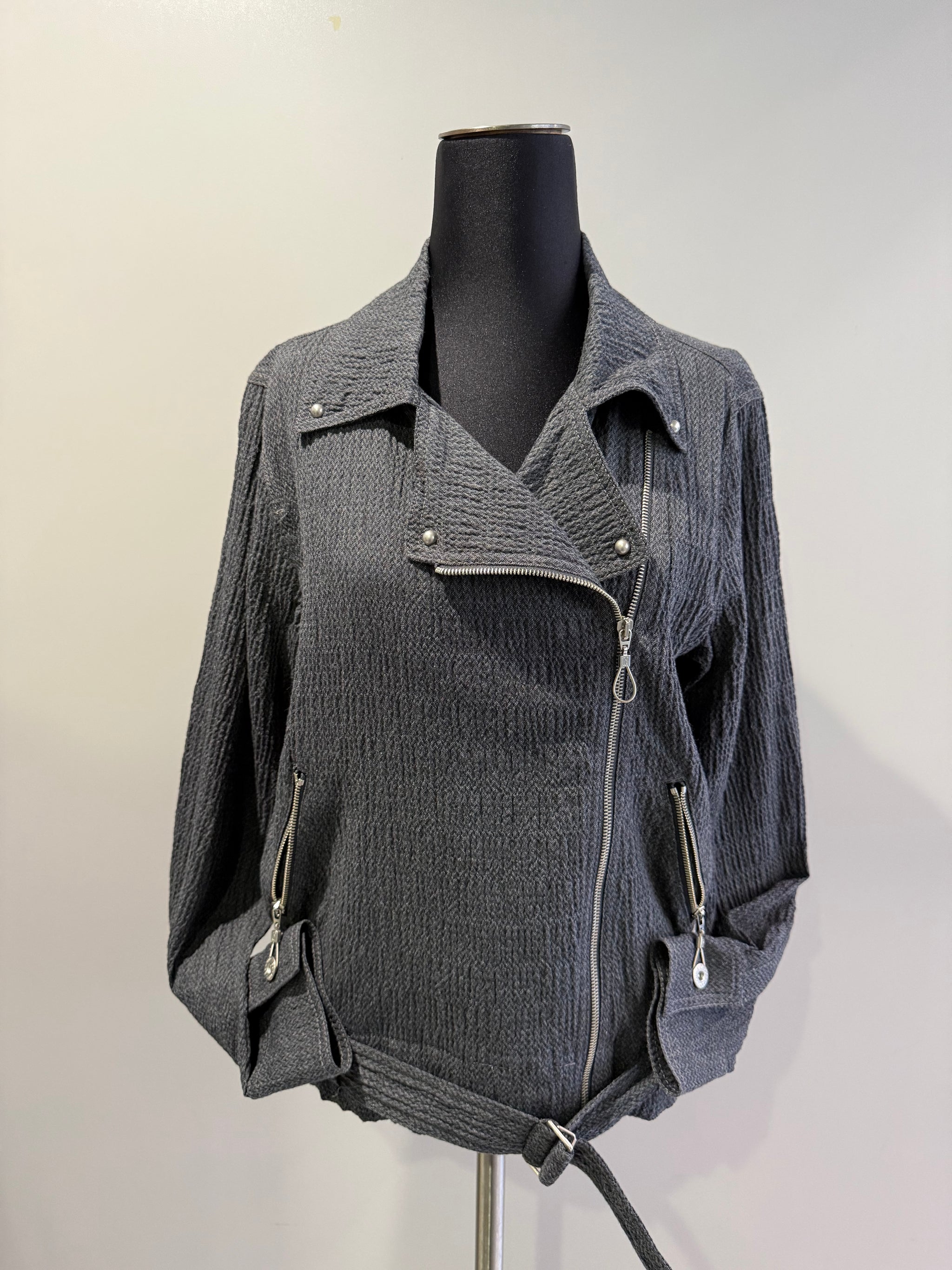 Light wrap jacket for the slightly cool weather with metal details. Composition: 99% Cotton, 1% Elastane Hand washing.