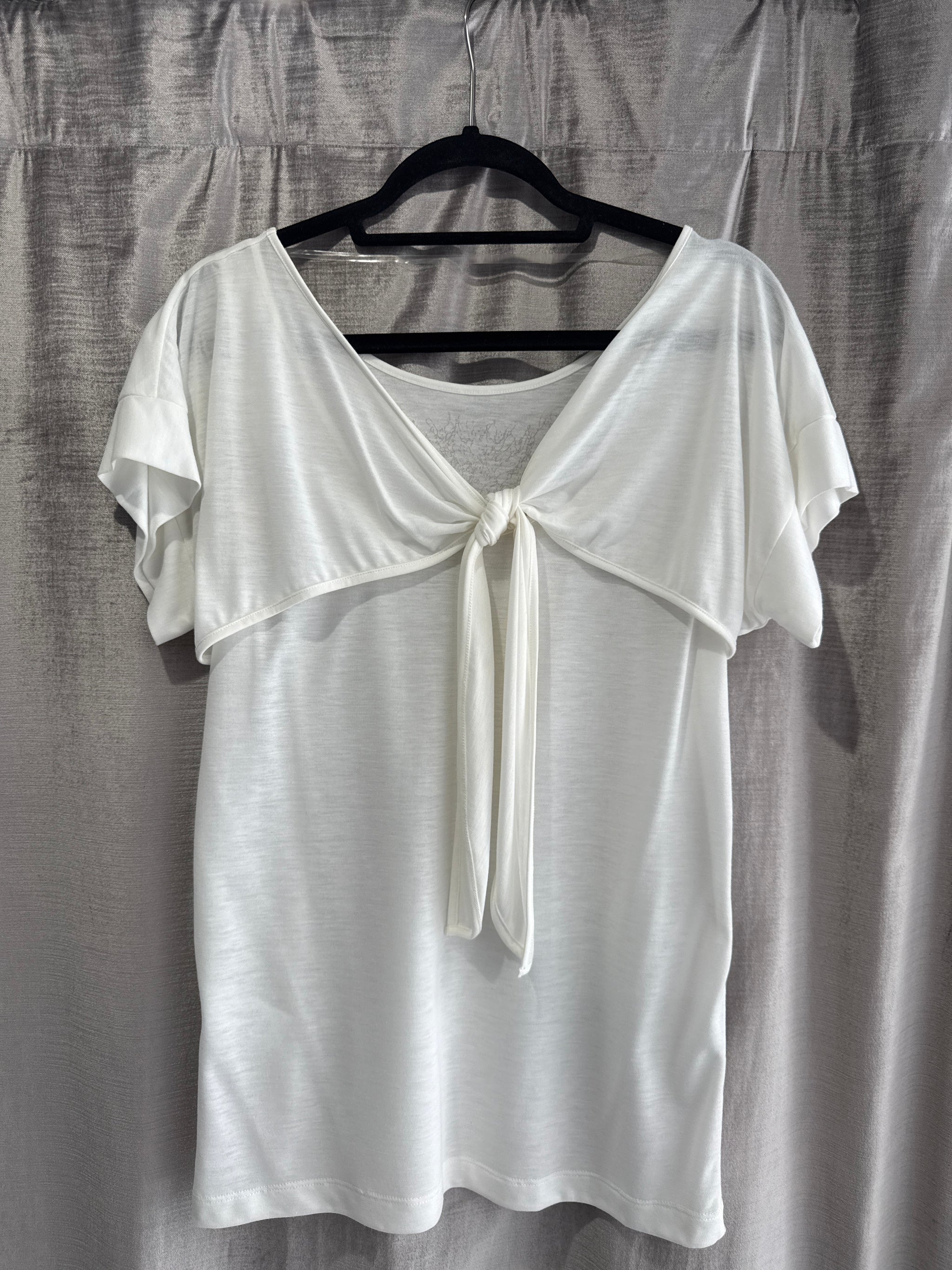 100% Cotton short sleeve shirt with soften V-neck neckline and contrasting facing. Delicate or hand wash on reverse side.
