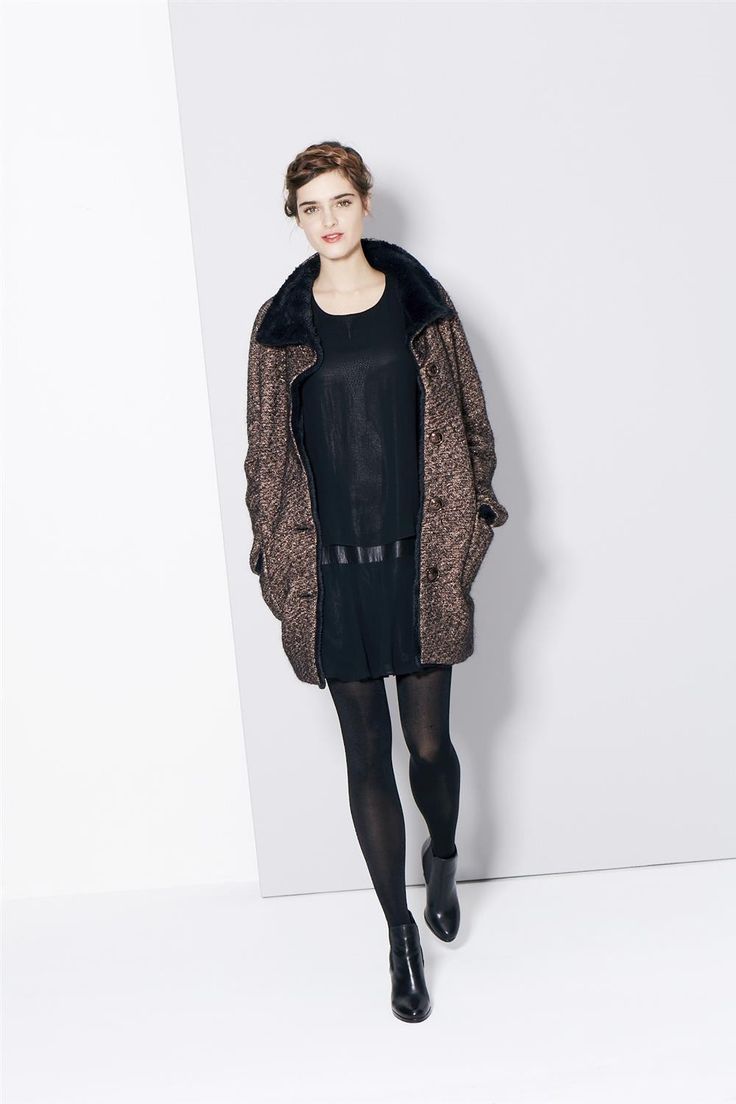 Tweed-look textured coat featuring pink thread lurex. Daumesnil features large, shiny buttons down the front with a thick collar, and a strap detail in the...