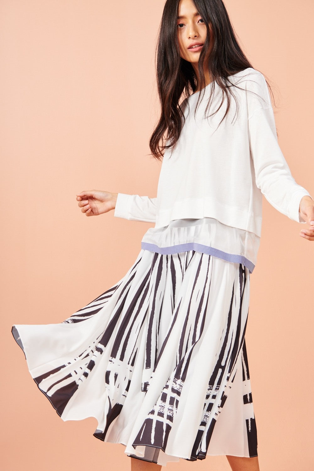 DESCRIPTION Mixed fabric light sweatshirt. Organza and gingham inserts at the waist. Pair it with a pair of jeans or a skirt for a chic...
